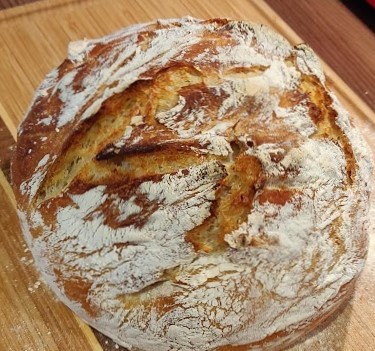Hyvä, maukas ja helppo leipä mutta vaatii vähän etukäteissuunnittelua kun taikina pitää tehdä jo edellisenä päivänä. Valmistusaika 12-24 tuntia + 45 minuuttia paistoaika Raaka-aineet noin 7 dl vehnäjauhoja 1 tl kuivahiivaa 2 tl suolaa 4 dl reilusti kädenlämpöistä vettä (42 astetta) Ohjeet Alkuperäinen resepti: https://www.kotikokki.net/reseptit/nayta/575799/Pataleip%C3%A4/